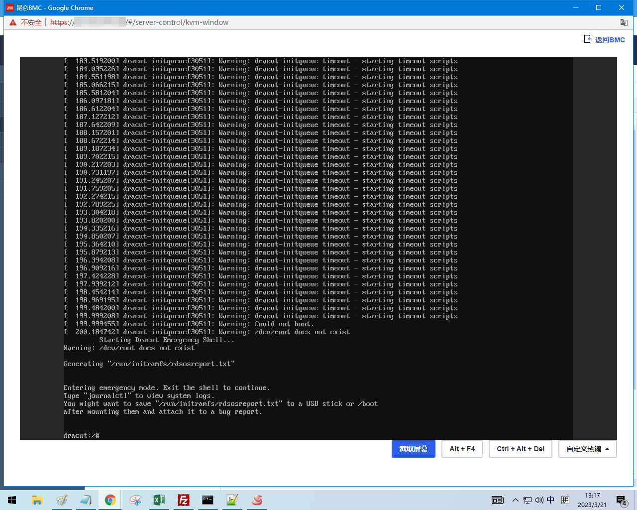 找不到 /dev/root 的原因为 initramfs 无 txgbe 网卡驱动,导致无法连接网络获取 squashfs.img ,最终导致 squashfs.img 无法挂载,安装镜像无法继续启动。