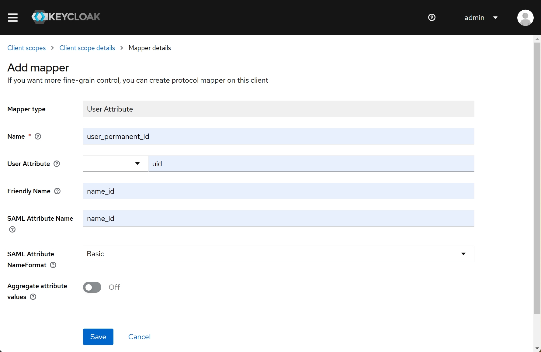 进入 Client scopes -> role_list -> Mappers -> Add mapper -> By configuration ,创建如下 User Attribute 映射: